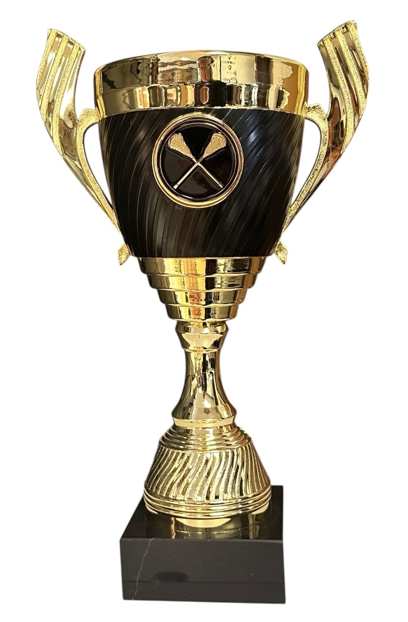 Gold Plastic Cup Trophy with Black Marble Base with lacrosse crossed stick medallion