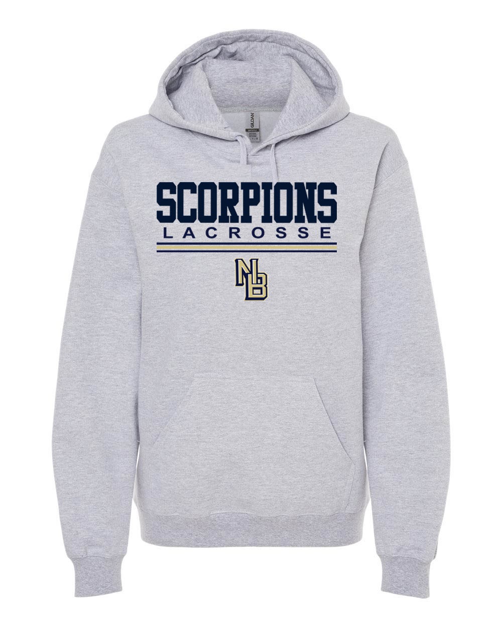 8.4 oz., 75/25 Sport Grey Hoodie with Scorpions Lacrosse Logo