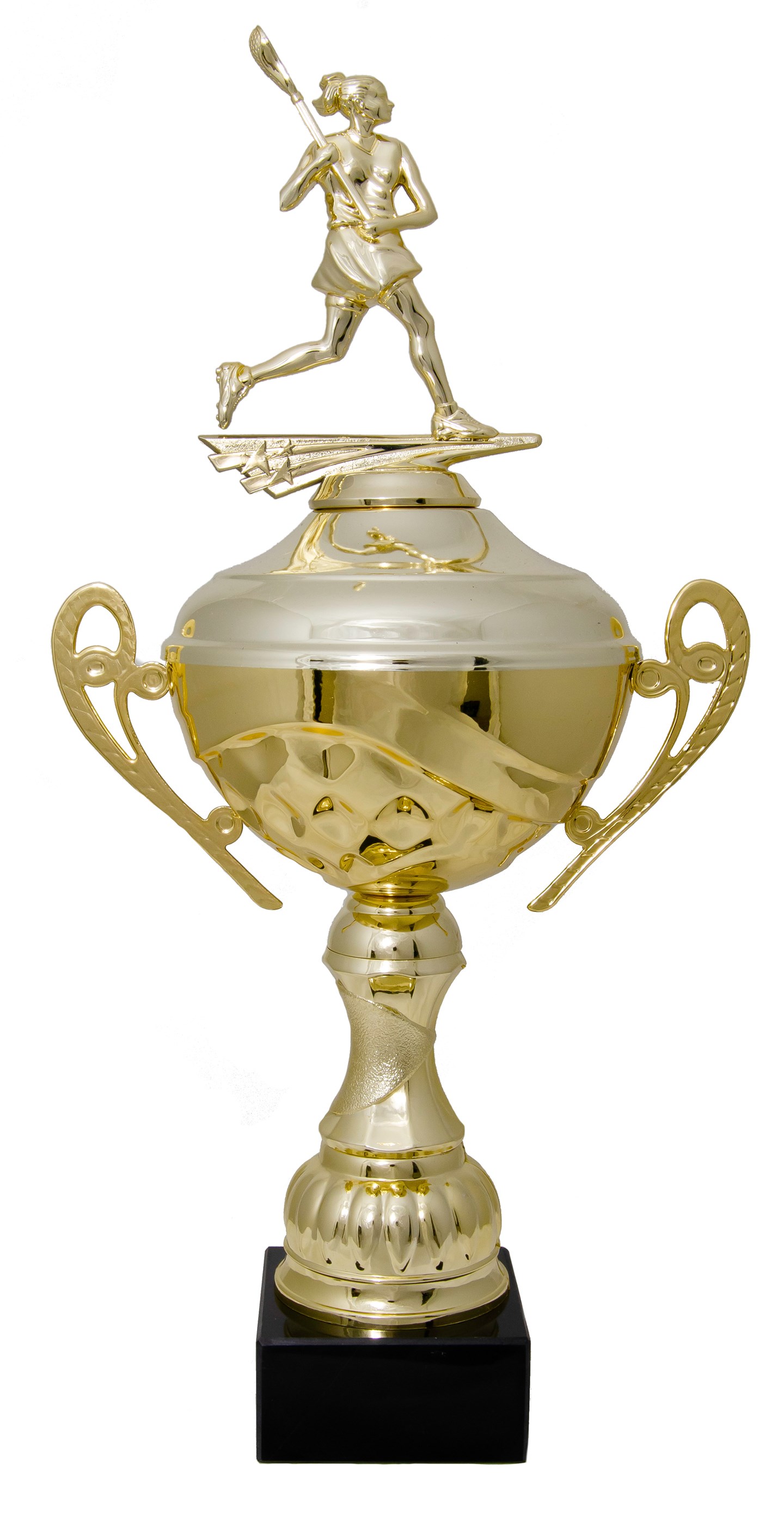 16" Gold and Silver Metal Lacrosse Trophy with black marble base.